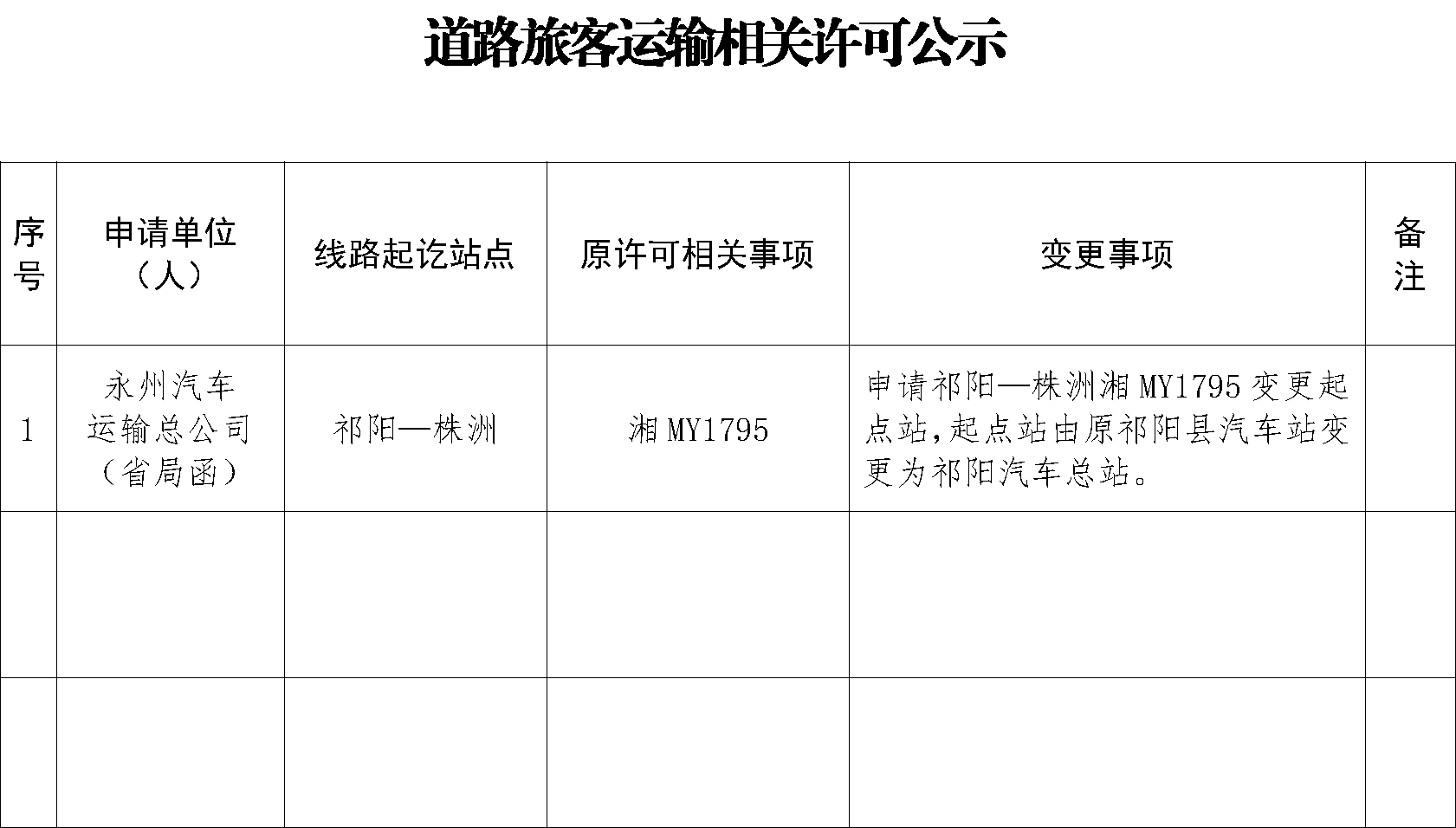 株洲市道路旅客运输相关许可公示